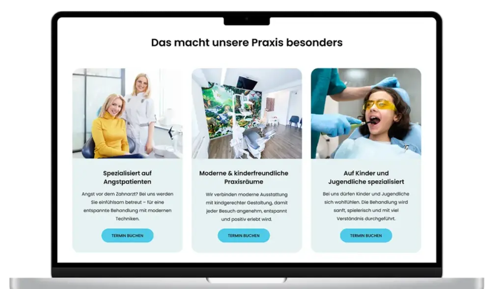 Wir entwickeln maßgeschneiderte Praxiswebsites, die Design, Funktionalität und Nutzerführung optimal vereinen – abgestimmt auf Ihre Praxis und Ihre Patient:innen.